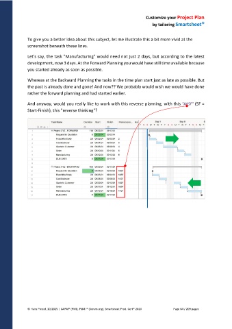 Whereas at the Backward Planning the tasks in the time plan start just as late as possible. But